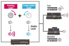 Chức năng Gain Compensation, được ứng dụng sau khi bất kỳ mức analog gain được thiết lập, được thực hiện ở công đoạn digital. Điều chỉnh digital gain là một chức năng khác của mixer CL để tạo nên một cơ chế hoạt động hiệu quả và thống nhất cho toàn hệ thống.