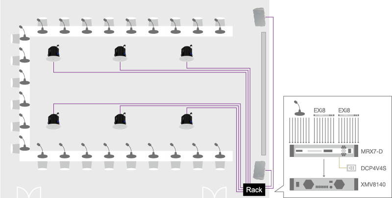 Ngoài MRX7-D, trình hướng dẫn cho phép các bộ xử lý ma trận MTX Series, bộ khuếch đại công suất loạt XMV, bảng điều khiển kỹ thuật số DCP và các bộ mở rộng đầu ra và đầu ra EXI8/EXO8 được thêm và sắp xếp khi cần thiết.