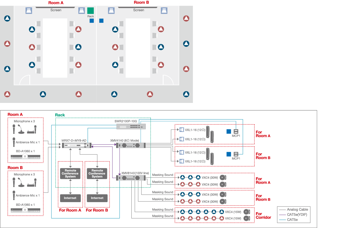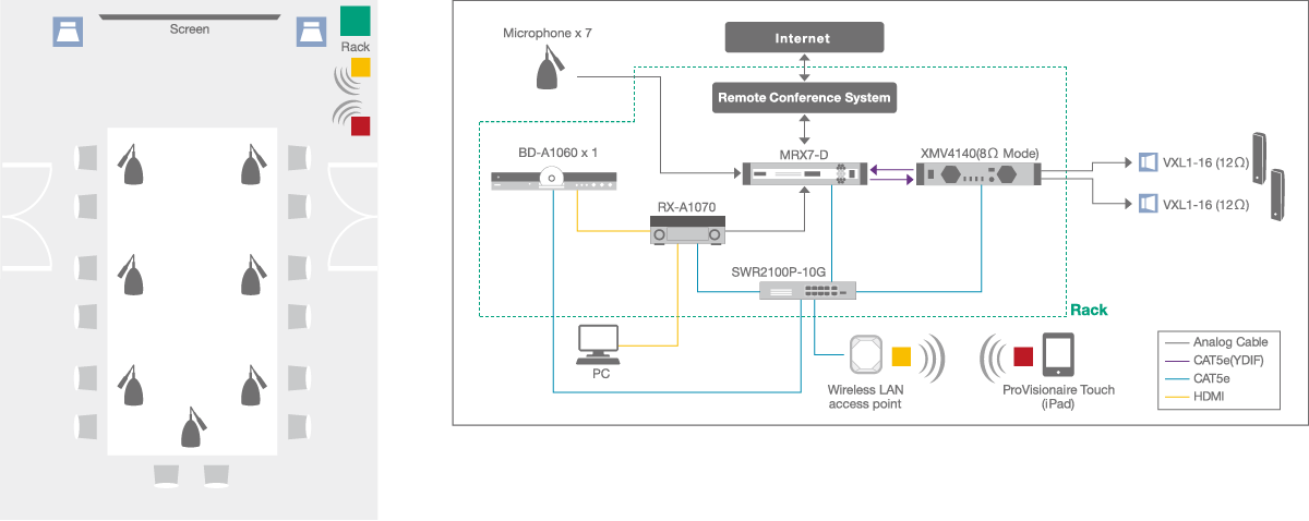 Sử dụng hai loại mạng trong MRX7-D có thể giảm đáng kể chi phí và thời gian cài đặt. Sự kết hợp của YDIF cho các kết nối hệ thống ngắn hơn và Dante cho các cài đặt lớn hơn có thể cải thiện đáng kể tính linh hoạt của thiết kế.