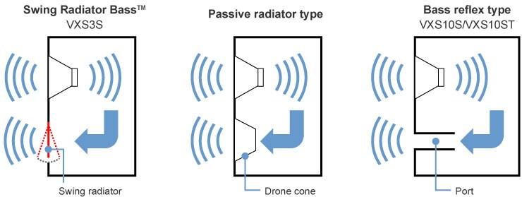 Với công nghệ SR-Bass™ chính hãng từ Yamaha được sử dụng trong VXS3S, sẽ có một mô hình gồm bốn vách ngăn được treo cố định và tần số thấp tạo ra chính nhờ sự cộng hưởng khi các các vách ngăn dao động. Không còn bị giới hạn về hình dạng và vật liệu được sử dụng cho màng loa, công nghệ SR-Bass™ có thể áp dụng cho nhiều kiểu thiết kế loa, bao gồm cả các mẫu nhỏ gọn.
