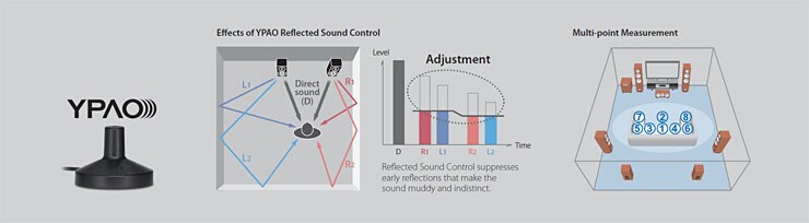 - YPAO R.S.C. (Kiểm soát âm phản hồi) Tối ưu hóa âm thanh với chức năng đo đa điểm