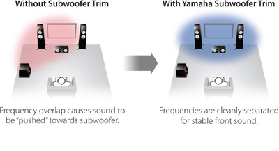 Kiểm soát Subwoofer Trim sẽ tăng cường tần số thấp bằng cách tránh chồng chéo với ngõ ra loa trước. Kết quả là sẽ mang lại âm tập trung, trong trẽo hơn torng khi vẫn cung cấp sự hồi đáp tần số liền mạch. Khi xảy ra sự chồng chéo tần số loa siêu trầm trong các hệ thống thông thường, toàn bộ âm thanh sẽ được ""đẩy"" hướng về loa siêu trầm. Subwoofer Trim sẽ lưu tâm đến điều này bằng cách tách tần số loa siêu trầm, sau đó ổn định mặt tiền sân khấu trong khi vẫn cung cấp âm bass cải thiện và cân bằng.