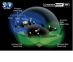 CINEMA DSP 3D cung cấp trường âm dày đặc, cao và rộng. Giải mã định dạng HD Audio cho phép bạn thưởng thức nguồn HD Audio. Virtual Presence Speaker cung cấp âp thanh 3 chiều mà không sử dụng các loa presence thực sự.