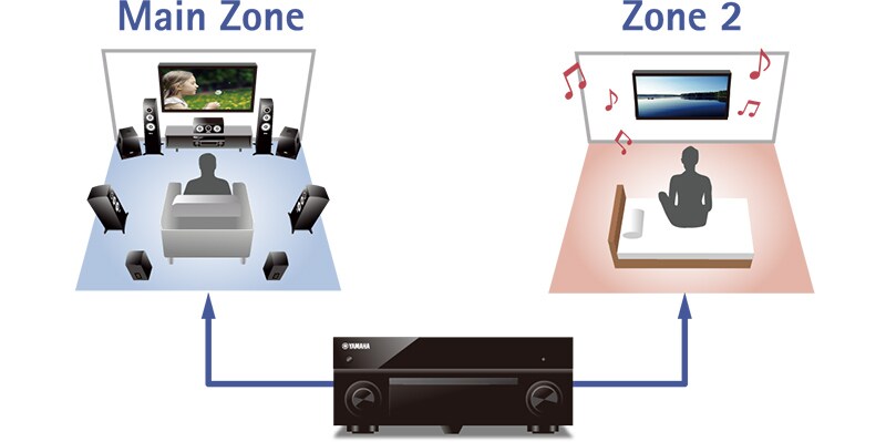 Bạn có thể truyền nội dung video hoặc âm thanh (không chỉ đầu vào HDMI mà còn cả các nguồn âm thanh khác, chẳng hạn như âm thanh kỹ thuật số hoặc âm thanh tương tự, nội dung mạng và đài FM / DAB) đến TV hoặc hệ thống rạp hát gia đình trong phòng khác (Vùng 2/4). Điều này cho phép bạn xem và nghe cùng một nội dung trong phòng chính (nơi lắp đặt bộ thu AV) hoặc thậm chí là các nội dung khác nhau. Giao diện người dùng đồ họa trên màn hình giúp bạn dễ dàng duyệt và chọn nội dung từ vùng thứ hai bất kể nội dung nào đang được phát trong vùng chính.