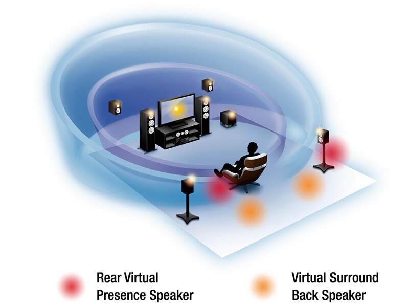 * Yêu cầu kết nối với loa hiện diện phía trước. Không thể sử dụng tín hiệu Dolby Atmos và DTS: X với các tính năng ảo này.