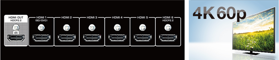 This AV receiver completely supports with the latest HDMI standards. Thanks to transmission of 4K video at 60 frames per second pass-through, you can fully enjoy the high definition video quality of 4K without degradation. It also adheres to the HDCP2.2 copyright protection standard for 4K video transmission.