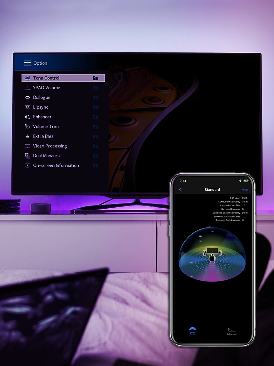 Ứng dụng dễ sử dụng này cho phép bạn điều khiển một cách thuận tiện và ‘thông minh’ công suất, âm lượng, lựa chọn đầu vào, chế độ DSP của bộ thu AV — và hơn thế rất nhiều — từ thiết bị iOS hoặc Android™. Bạn cũng có thể sử dụng đến 23 ngôn ngữ khác nhau và tùy chỉnh giao diện bằng cách ẩn các biểu tượng không sử dụng và đổi tên chức năng. Cũng có cả phiên bản cho máy tính bảng.