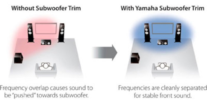 Kiểm soát Subwoofer Trim sẽ kiểm soát việc tăng cường tần số thấp bằng cách tránh chồng chéo với đường tiếng phát ra từ loa Front. Kết quả mang lại âm hình tập trung hơn và chất âm sạch hơn, đồng thời cung cấp sự hồi đáp tần số liền mạch. Khi xảy ra sự chồng chéo tần số thấp trong các hệ thống loa thông thường, toàn bộ âm thanh sẽ được "đẩy" hướng về loa siêu trầm. Subwoofer Trim sẽ có nhiệm vụ tách biệt tần số thấp của loa siêu trầm, để giúp ổn định tổng thể âm thanh phát ra từ phía trước, và mang lại âm trầm được hài hòa và mạnh mẽ hơn.