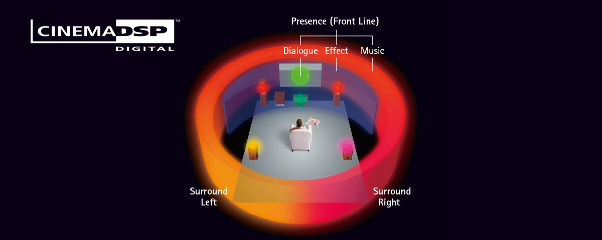 Ngay cả khi bạn không thể lắp đặt loa vòm phía sau, Virtual CINEMA DSP sẽ giúp giả lập âm thanh vòm 5 kênh một cách chân thực, chỉ bằng hai loa phía trước với chất lượng và độ phân giải cao. Bạn có thể sắp xếp linh hoạt các loa trong phòng để dễ dàng tận hưởng âm thanh vòm chất lượng cao.