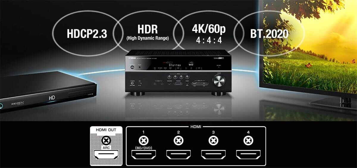 • HDMI® (4 in / 1 out) với hỗ trợ 4K Ultra HD đầy đủ (4K / 60p [4: 4: 4]), HDR Video và ​​BT.2020