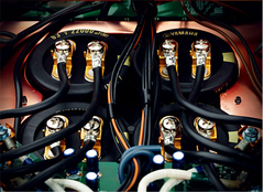 In order to completely eliminate signal energy loss, important parts of even the circuits employ screw connections. In addition to wiring of the block capacitor of the power unit—which is the real heart of the amplifier and as such requires high power—screw connections were adopted for all crucial spots of signal transmission, including the connection of the pre amp circuit with the power amp circuit, and the cabling to the speaker terminals from the output stage of the power amp. In addition to making the signal path as short as possible, this significantly lowers the impedance, and greatly reduces signal loss.