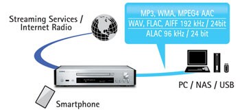 Network compatible CD player for freely enjoying a wide variety of music sources.