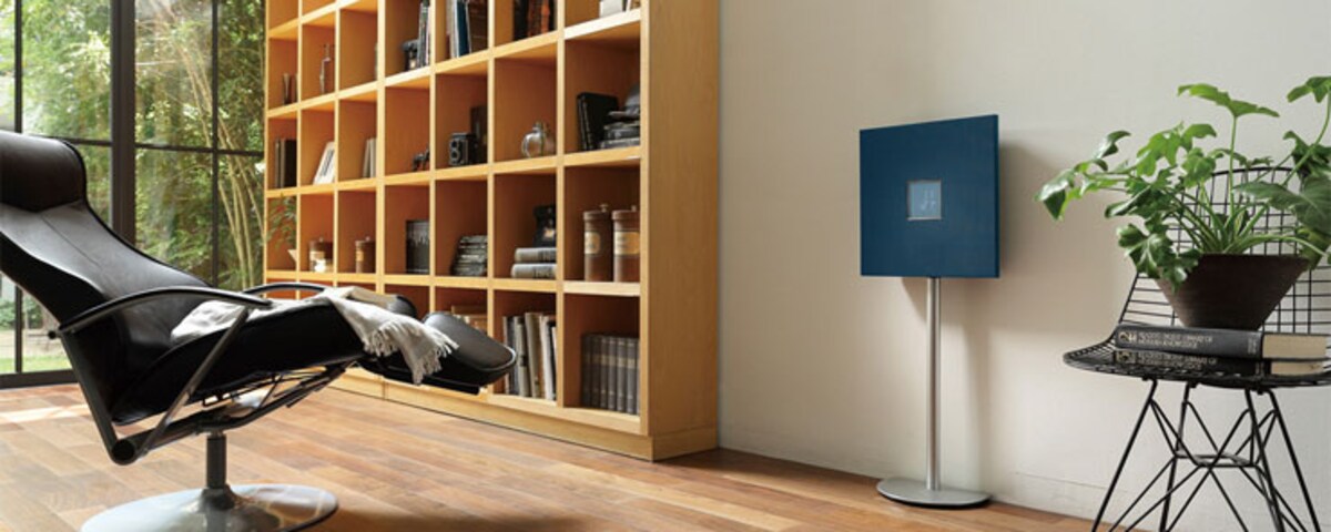 With a sleek stand and minimal proportions, Restio looks like a work of art. It was created by completely re-imagining the concept of a music source as part of the interior. The independent body style makes music an interior design element, and because the sides are slanted, it appears to be a thin panel. The front grille uses expanded metal, providing an attractive texture.