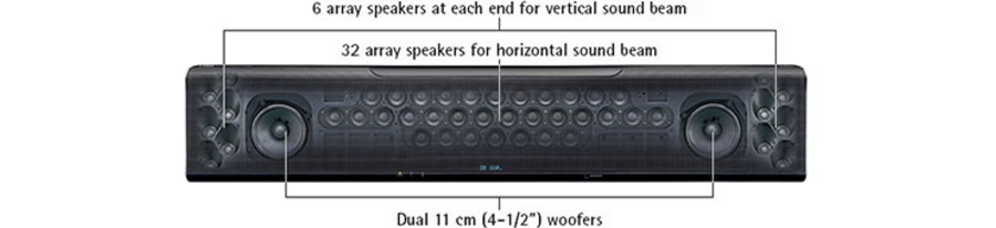 - Âm thanh vòm từ dàn 44 loa trong tổng số cấu hình 46 loa — nhiều nhất trong dòng YSP từ trước tới nay.