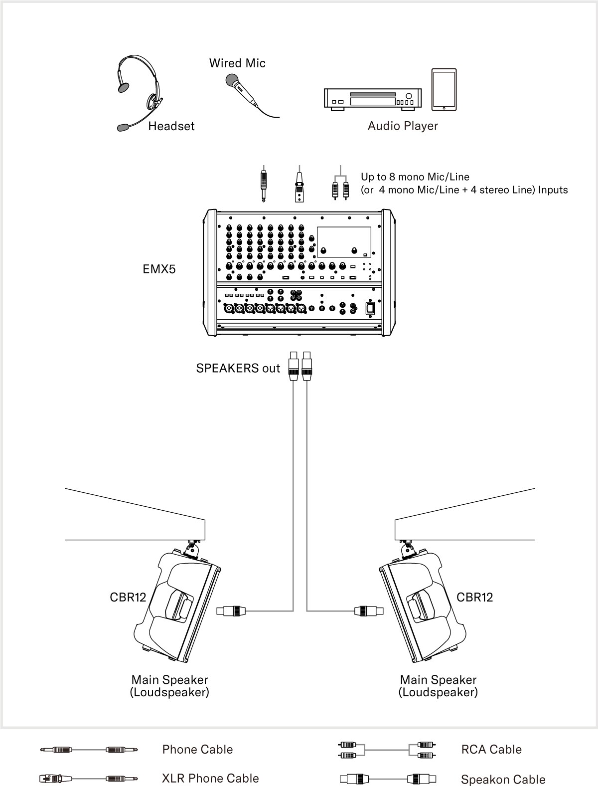 Một hệ thống âm thanh biểu diễn đơn giản với mixer kèm công suất lớn kết hợp hệ thống loa bền, nhẹ, dễ lắp đặt, phù hợp để chơi nhạc tại các trường khiêu vũ, trung tâm thể dục, v.v. với âm thanh chất lượng cao bất chấp ngân sách hạn chế.