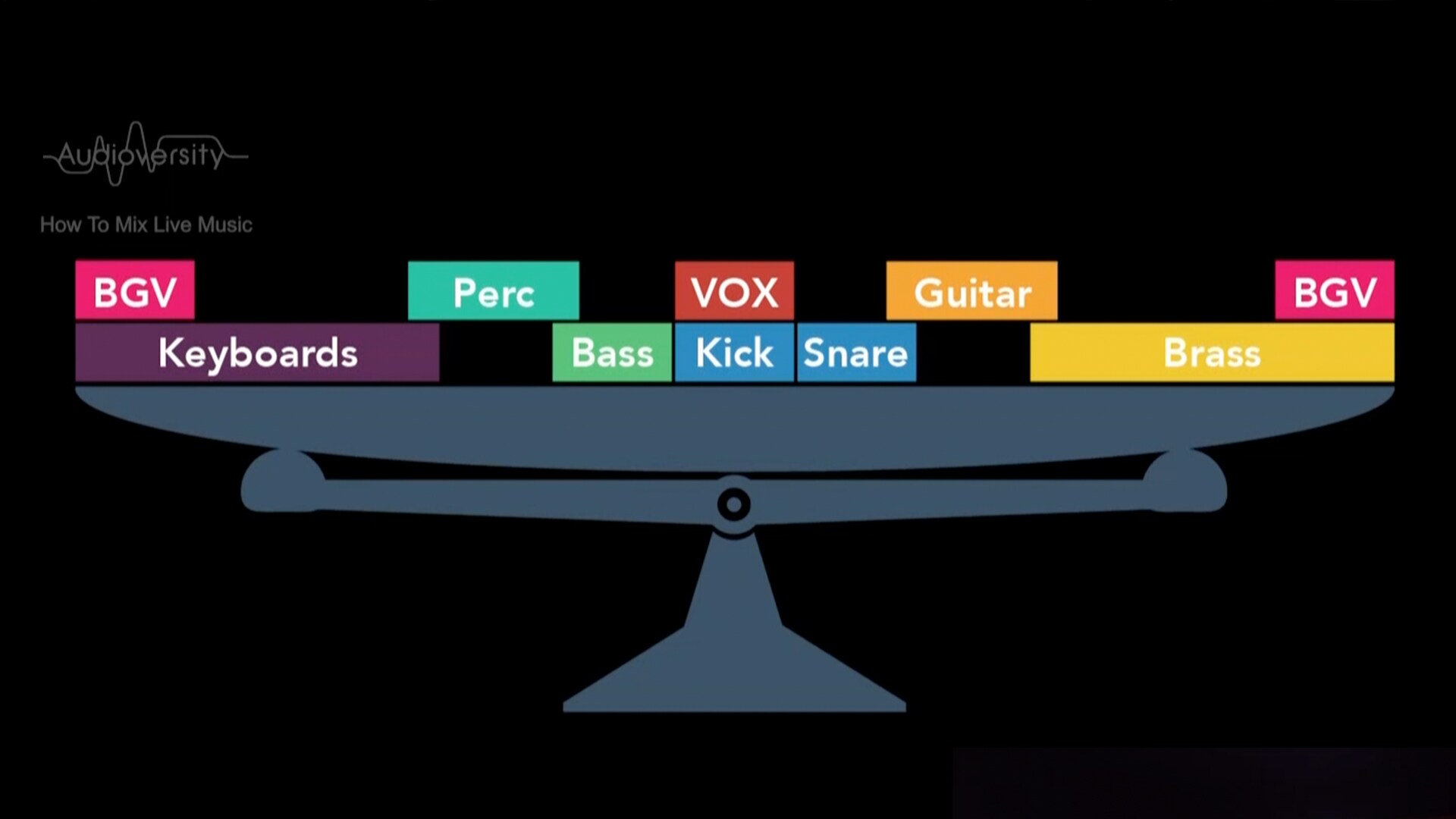 Chúng tôi đã thiết lập khuếch đại đầu vào, bộ lọc thông cao, EQ và pan. Bây giờ là lúc tập trung vào các thanh trượt. Làm thế nào để cân bằng âm thanh của một ban nhạc và tiếp tục nghe và điều chỉnh trong khi chương trình diễn ra.
