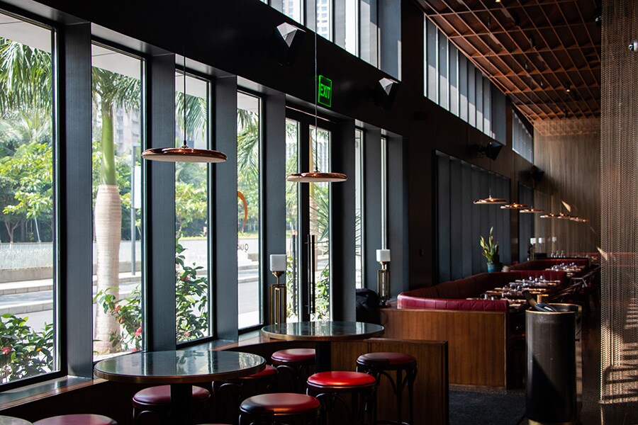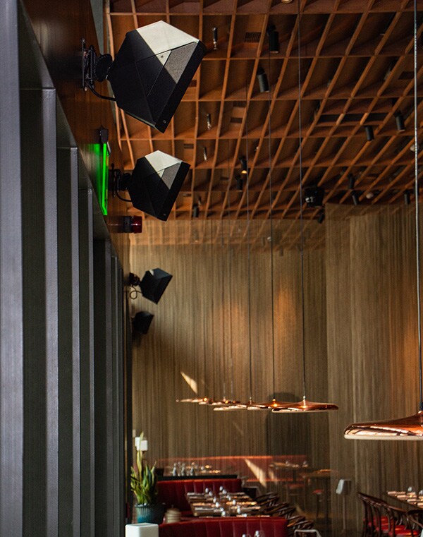 Hệ thống chiếu sáng tinh tế, nhà bếp mở và không gian quán bar được đầu tư âm thanh và nhạc nền chất lượng cao, cả hai đều do ông Kapil Thirwani của Munro Acoustics thiết kế. Hiểu được "khẩu vị" của những thực khách, ông đã thiết kế một môi trường âm thanh thực sự nâng cao trải nghiệm ẩm thực của họ. Ông đã chọn các sản phẩm của Yamaha và NEXO vì biết rằng chúng sẽ mang lại âm thanh đặc biệt với mức ngân sách hợp lý.