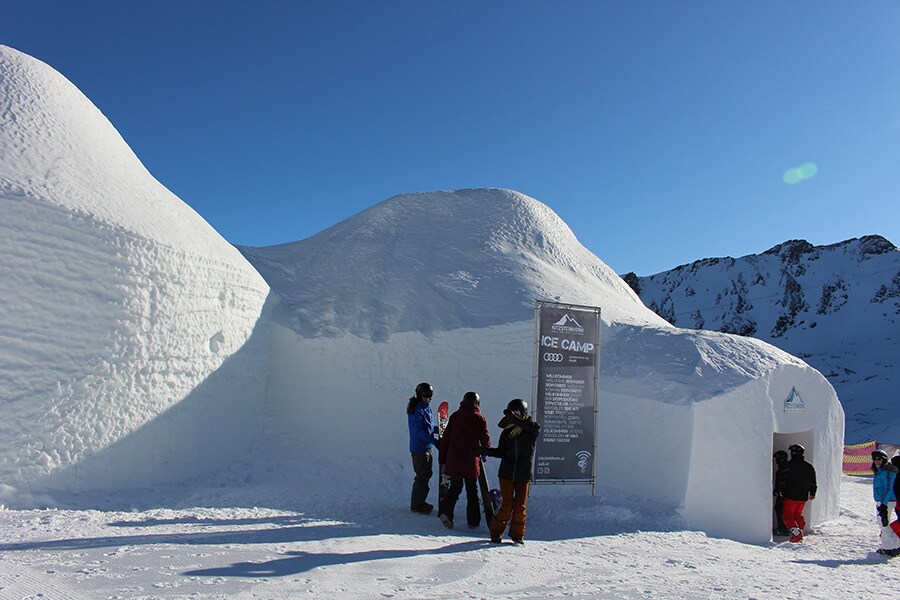 Nằm trên độ cao 2600 mét so với mực nước biển, Ice Camp 2020 gồm có ba căn lều tuyết được thiết kế độc đáo, với đường kính 12m và cao 6m. Ngay ở vị trí trung tâm là Dàn Giao hưởng băng đặc biệt (Ice Symphonium) do nghệ sĩ người Áo Max Seibald biểu diễn. Họ sử dụng nhạc cụ rất ấn tượng khi được tạo hoàn toàn từ băng bản chất giống một chiếc "chuông xoay" kết hợp với những chiếc kèn cor khổng lồ được cách điệu. Nghệ sĩ hướng dẫn các du khách có thể sử dụng các phím cảm ứng để thay đổi các giai điệu, điều đó sẽ gợi lên bầu không gian hòa quyện tuyệt vời kết hợp với "âm nhạc của thiên nhiên”