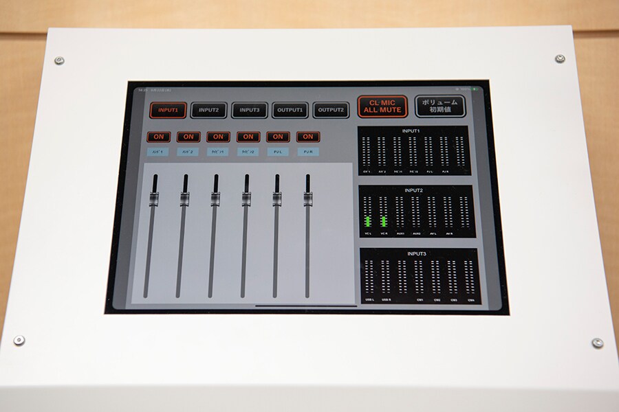 Tiến sĩ Sunahara: Giao diện của iPad được DenON phát triển cho chúng tôi hoạt động rất tốt. Tất cả các cài đặt có thể được thực hiện trên iPad. Điều này rất đơn giản và bạn có thể làm bất cứ thứ gì bạn muốn. Tôi nghĩ rằng bất cứ ai cũng có thể xử lý trên giao diện này. Tôi có thể nói rằng bạn có thể làm theo ý mình, vì vậy tôi nghĩ rằng denON Engineering đã có một khoảng thời gian khó khăn, nhưng nhờ vào sự chăm chỉ của họ, giờ đây chúng tối có một hệ thống thực sự tốt.