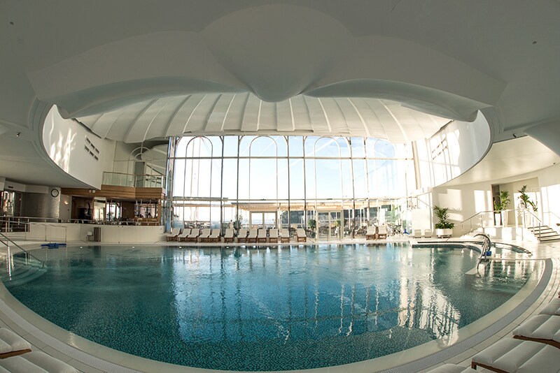 Câu lạc bộ thể hình và spa bao gồm hai hồ bơi nước biển nóng trong nhà cùng một hồ bơi lạnh, phòng tập thể hình được trang bị hiện đại, phòng tập chuyên về các bài tập hệ tim mạch, phòng xông hơi nam nữ, phòng tắm nắng và bể tắm sục.
