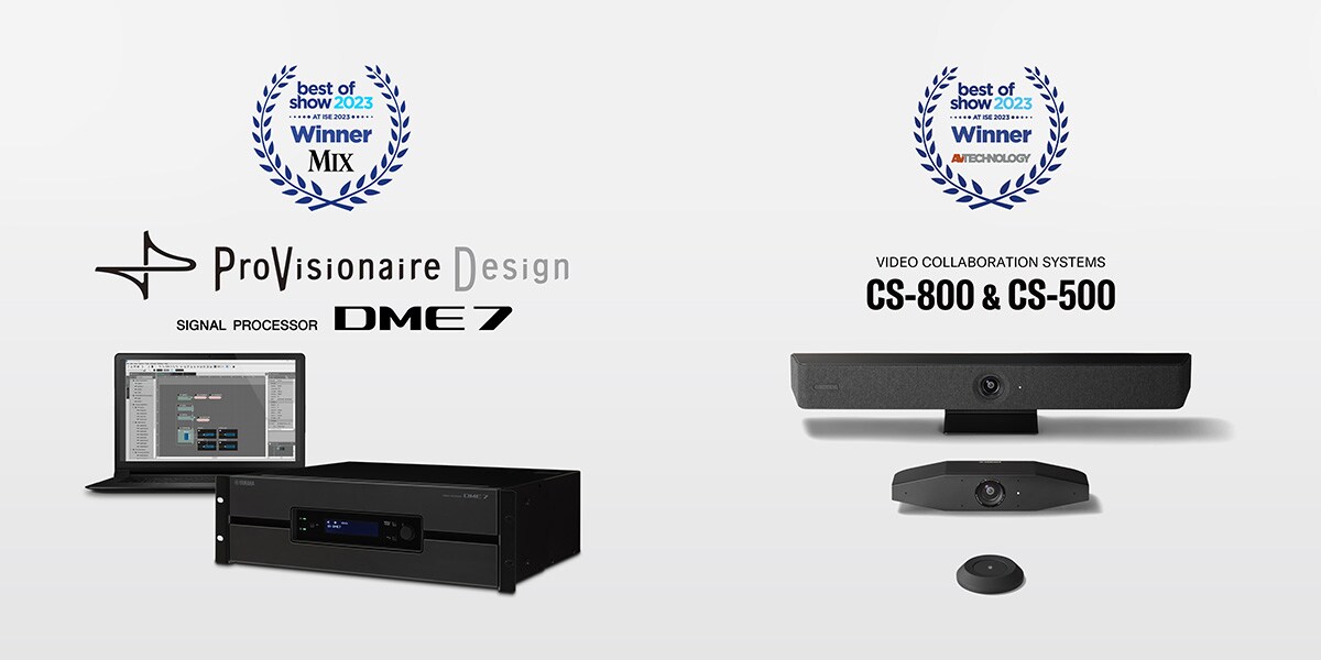 Yamaha rất vinh dự khi nhận giải Best of Show cho bộ xử lý tín hiệu số DME7/phần mềm ProVisionaire Design và hệ thống hội nghị truyền hình CS-800/CS-500 tại triển lãm Hệ thống Tích hợp Châu Âu (Integrated Systems Europe - ISE) 2023.