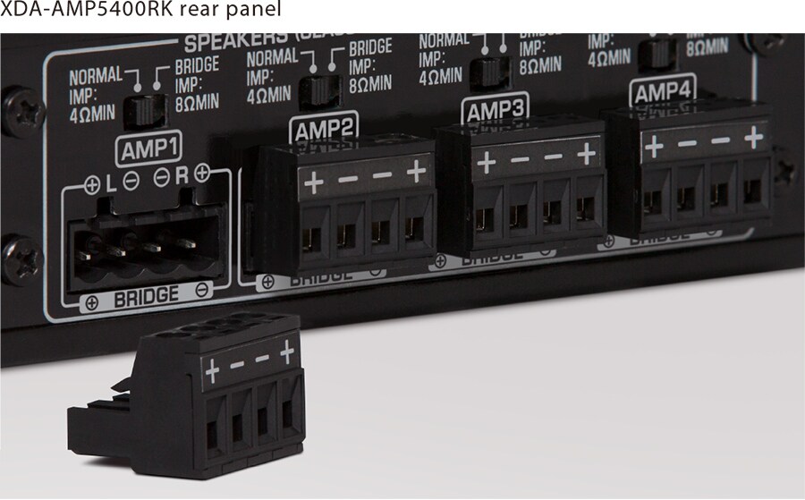 Từng vùng trong bốn vùng khuếch đại cũng có thể bắc cầu, cho phép bạn tăng công suất để chọn loa khi cần.