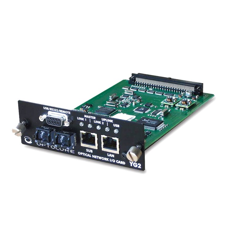 - 1 cổng "Sub" để kết nối với thẻ YS2, mở rộng số kênh âm thanh lên đến 64In/64Out (32In/32Out @ 96kHz) 2 bộ thu phát quang LC có thể cắm, chế độ đơn hoặc đa chế độ có thể thay đổi theo nhu cầu