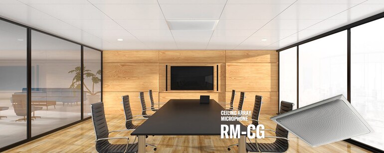RM-CG là một micro gắn trần được trang bị tính năng Multi-beam Tracking hỗ trợ theo dõi tiếng nói của nhiều người cùng một lúc. Beam phát hiện và theo dõi hướng của nguồn âm thanh theo tiếng phát ra từ người nói, nên không cần điều chỉnh trước vị trí hoặc phạm vi thu thập âm thanh.
