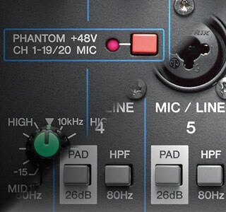 Với nguồn phantom, bàn trộn dòng MG Series cho phép bạn tận dụng tối đa dải tần rộng và chất lượng âm thanh cao của micro condenser. Các kênh đầu vào được trang bị công tắc PAD, giúp chấp nhận tín hiệu từ MIC đến line level. Công tắc PAD giảm cường độ tín hiệu đầu vào cao, thường gặp khi thu nhạc cụ bằng micro trong quá trình biểu diễn, giúp tránh hiện tượng clipping, bảo vệ chất lượng bản mix.