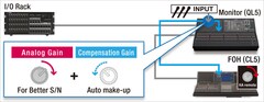 Khả năng kết nối trực tiếp từ những cổng input đến những cổng output cho phép tín hiệu có thể truyền tự do giữa các input và output analog, Dante, và khe cắm MY. Ví dụ, một mixer QL có thể được sử dụng như một thiết bị I/O cho một mixer QL hay CL khác, trong khi đồng thời đóng vai trò như một mixer monitor. Không chỉ một mixer QL được yêu cầu dùng cho cả monitor và I/O, mà việc điều chỉnh âm lượng analog cũng có thể được thực hiện từ một mixer QL hay CL khác cho FoH. Ngoài ra, cũng có thể vừa mix những tín hiệu analog nhận được từ mixer vừa truyền trực tiếp chúng đến hệ thống thu âm multitrack qua Dante.