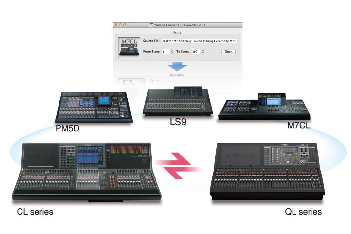 Bởi vì dữ liệu mix của các mixer CL và QL tương thích với nhau, nên những dữ liệu được tạo ra ở mixer này có thể được sử dụng trực tiếp trên những mixer khác. Ngoài ra, ứng dụng Yamaha Console File Converter cũng cung cấp khả năng liên kết với các mixer PM5D, M7CL, và LS9. Tất cả dữ liệu bạn đang có đều có thể sử dụng tốt trong tương lai.