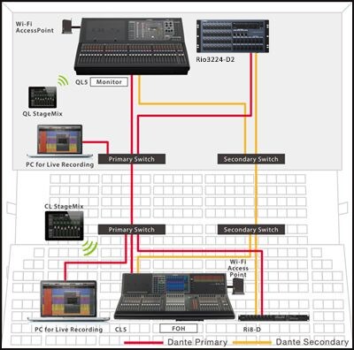 Trong hệ thống live sound thu gọn này, mixer CL làm nhiệm vụ FoH trong khi một mixer QL được đặt bên cạnh sân khấu để sử dụng như là mixer monitor và thiết bị I/O. Chức năng Gain Compensation việc điều chỉnh âm lượng có thể được bảo vệ từ các mixer khác. Để tối đa sự ổn định của hệ thống, một cấu hình mạng star với những bộ switch mạng được sử dụng cho kết nối redundancy để khi một trong những phần của hệ thống mạng gặp sự cố thì cả hệ thống vẫn hoạt động bình thường. Chức năng thu âm live đến nhiều máy tính cũng được trang bị.