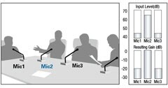 Nếu hai người nói đồng thời, phân phối khuếch đại giữa các micrô hoạt động được điều chỉnh để đạt được mức tăng chung nhất quán, trong khi mức tăng của micrô còn lại sẽ giảm xuống.