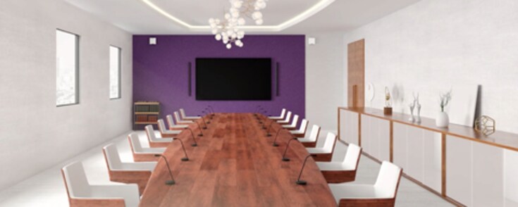 Giải pháp hội nghị toàn diện giới thiệu micro trần array và bộ xử lý hội nghị từ xa, bao gồm các bộ chuyển mạch mạng PoE đáng tin cậy và loa Dante PoE.