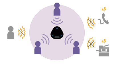 *Khi sử dụng chế độ SoundCap, loa ngoài có thể tính toán chính xác khoảng cách của các nguồn âm thanh và làm giảm âm thanh từ bên ngoài phạm vi thu nhận một cách hiệu quả (trong bán kính 1 m [3,3 ft]). Điều này đảm bảo giọng nói của con người trong bán kính 1 m được truyền tải rõ ràng đến những người tham gia từ xa.