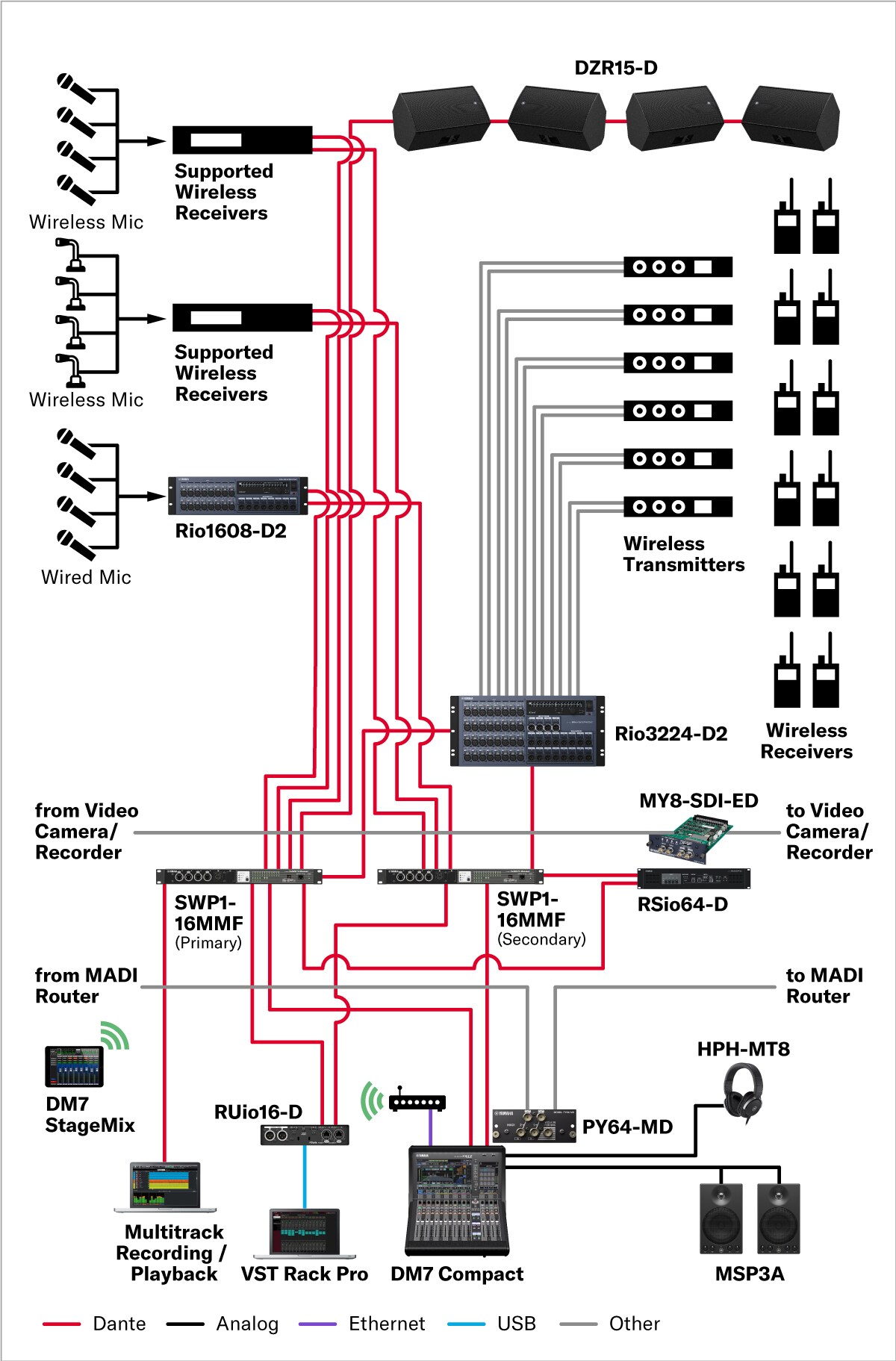 Một lý do khác khiến mọi người chọn thiết bị âm thanh của Yamaha là khả năng kết nối với các mạng âm thanh khác nhau, MADI và AES/EBU. Các bộ trộn và bộ xử lý kỹ thuật số của chúng tôi được trang bị các thẻ I/O để dễ dàng kết nối với các định dạng khác nhau. Thiết bị Yamaha cũng tích hợp mượt mà với các hệ thống hiện có. Các bộ trộn kỹ thuật số của chúng tôi có thể được sử dụng để giám sát và điều khiển micro không dây của các hãng khác như Shure, Sennheiser và Sony. Một lợi thế khác của các bộ trộn của chúng tôi là khả năng mở rộng hệ thống vượt trội và sự thân thiện với người dùng.