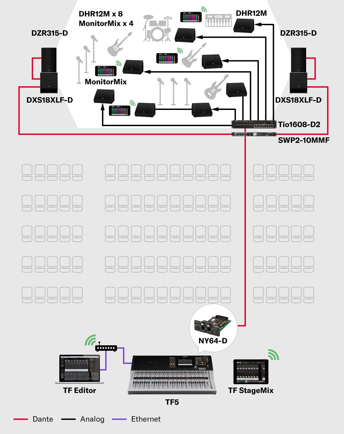 Đây là giải pháp dành cho các nhà thờ quy mô nhỏ đến trung bình, nơi có thể diễn ra nhiều hoạt động trình diễn khác nhau. Hệ thống lấy bàn mixer TF5 làm trung tâm, kết hợp với loa DZR được trang bị các chức năng linh hoạt để tối ưu hiệu suất công suất cao, cùng với QuickPro Presets hỗ trợ người vận hành dễ dàng thiết lập âm thanh lý tưởng. Là một hệ thống hỗ trợ Dante, cấu hình và thời gian lắp đặt được rút gọn tối đa nhờ khả năng truyền nhiều kênh âm thanh chỉ qua một sợi cáp Ethernet nhẹ. Dante cũng cho phép thiết lập kết nối dự phòng thuận tiện hơn, giúp nâng cao độ tin cậy của hệ thống và mang lại trải nghiệm vận hành yên tâm.