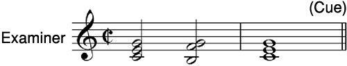 Ứng viên lắng nghe ba hòa âm liên tiếp và hát/đọc tên (Grade 13), đàn (Grade 12,11) các nốt của hợp âm.