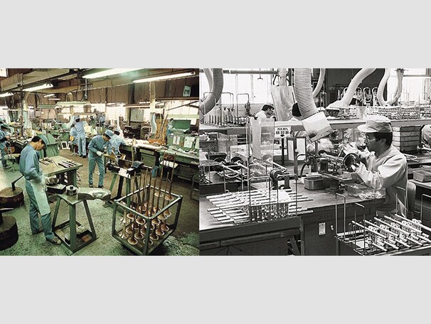 Nhân viên sản xuất của Yamaha trong các nhà máy vào những năm 1970.