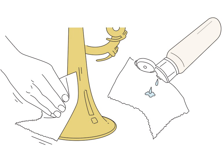 Đổ một lượng nhỏ lên gạc đánh bóng hoặc vải đánh bóng.