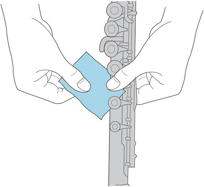 Đặt giấy bột giữa miếng đệm và lỗ âm với bề mặt nhẵn đối diện với miếng đệm sau đó nhẹ nhàng đóng phím một vài lần.