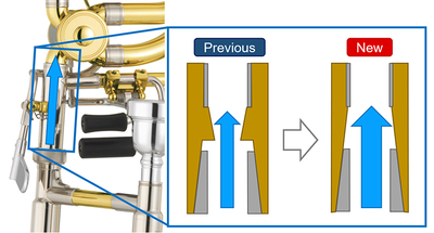 Các mẫu kèn trước đây có phần nhô ra bên trong đầu nối ống trượt, vốn được thiết kế nhằm mang lại lực cản tối ưu và âm thanh ổn định khi chơi. YBL-835 loại bỏ chi tiết thiết kế này, khiến kèn có âm lượng lớn hơn, chất âm mạnh mẽ và nhìn chung cải thiện độ phản hồi khi chơi.