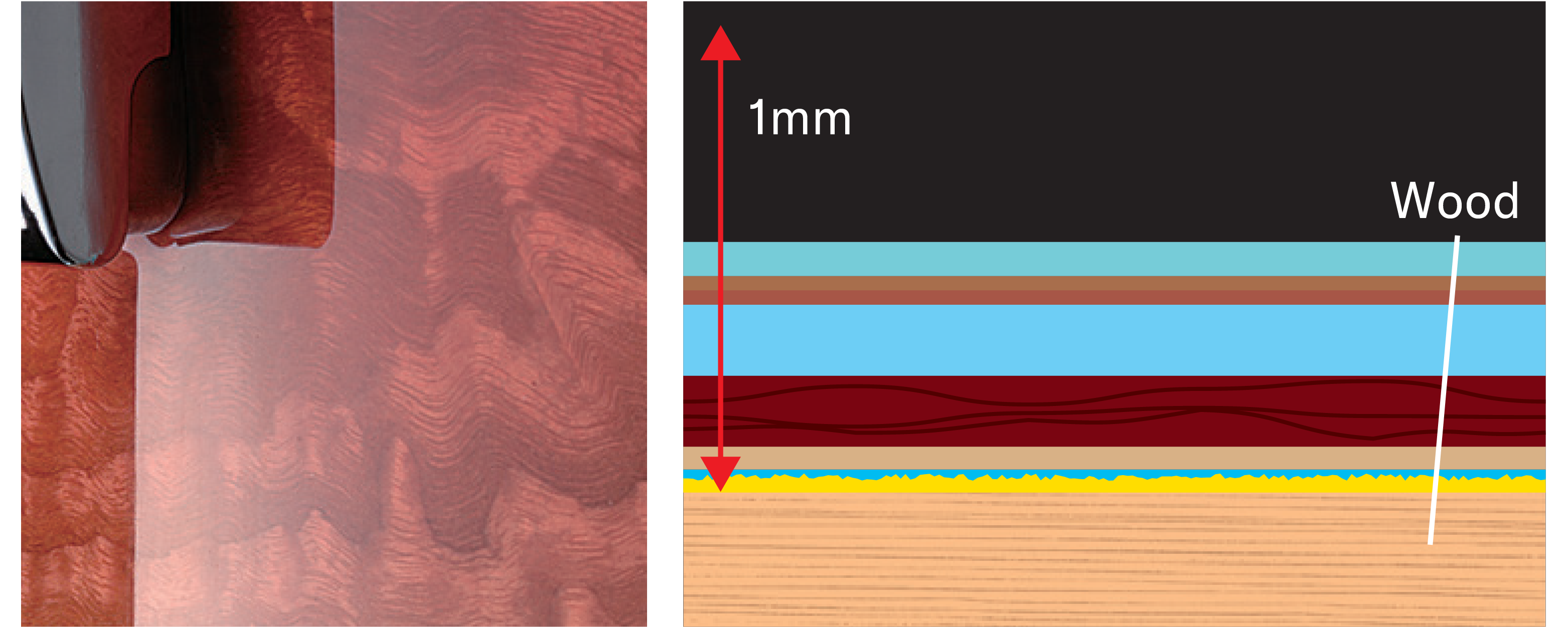 Kỹ thuật truyền thống của Nhật Bản được gọi là "UZUKURI" đã được cải thiện để sử dụng trên vỏ trống của Yamaha. Trong quy trình này, các vùng mềm trong vân gỗ được đánh nhám và sau đó toàn bộ lớp vỏ được phủ một lớp sơn đen mỏng. Toàn bộ bề mặt của lớp vỏ sau đó sẽ được đánh nhám lại trước khi phủ lớp sơn phủ cuối cùng và đó quy trình làm nổi bật vẻ đẹp tự nhiên của vân gỗ Oak.