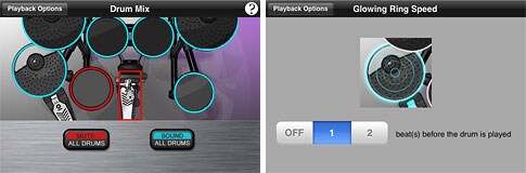 Glowing rings make it easy to see which drums to hit and when to hit them, so you can learn to play along with your favorite songs. Hit the corresponding drum when the glowing ring reaches the edge of the drum.
