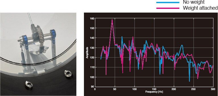 Trống bass có các móc đúc khuôn theo thiết kế, với chức năng chống ồn thông qua việc sử dụng tấm chèn.