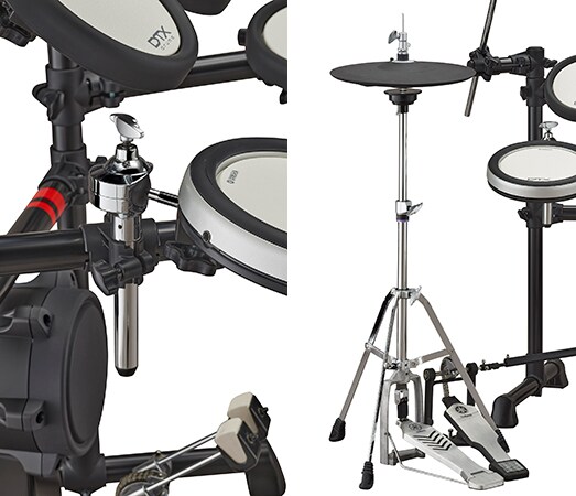 Giá đỡ hi-hat HS650A của Yamaha đi kèm với DTX6K2-X và DTX6K3-X. Toàn bộ dòng DTX6 cũng sử dụng kẹp nối truyền thống của Yamaha cho các tấm snare, giúp dễ dàng điều chỉnh cách lắp đặt.
