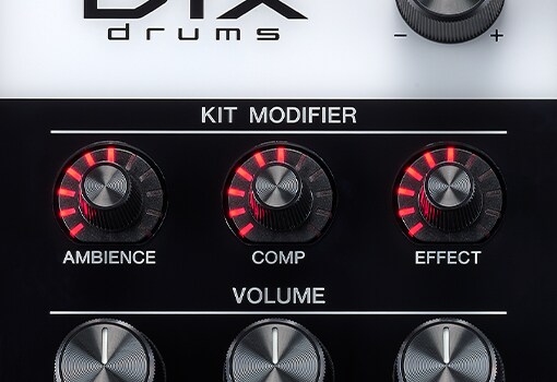 Để các tay trống có thể thưởng thức âm thanh của bộ trống, Yamaha đã cô đọng bí quyết có được qua nhiều năm kinh nghiệm vào KIT MODIFIER, bao gồm ba núm điều chỉnh - AMBIENCE, COMP và EFFECT.