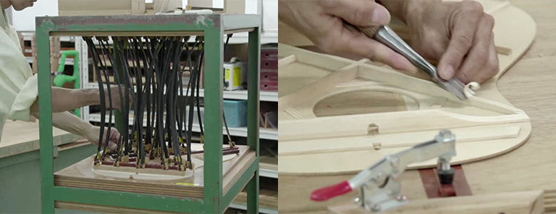 Có một số công việc mà máy móc có thể làm rất tốt, đặc biệt là những công việc đòi hỏi độ chính xác và độ lặp lại, tương đồng cao; ví dụ, việc cắt các khe cắm phím đàn trong bàn phím là một công việc quan trọng được xử lý bởi công nghệ điều khiển sự chính xác của máy móc. Nhưng để tạo ra các nhạc cụ thực sự đáp ứng nhu cầu của người chơi guitar, có những yếu tố đòi hỏi sự cẩn trọng và linh hoạt của từng cá nhân. Đó là công việc mà ở đó kỹ năng và kinh nghiệm của những người thợ thủ công Yamaha thực sự tỏa sáng.