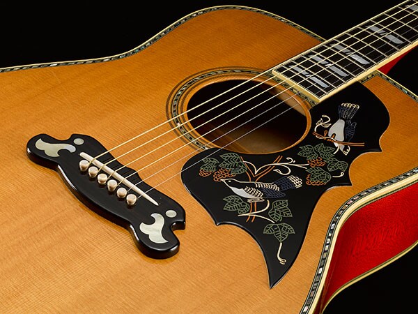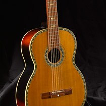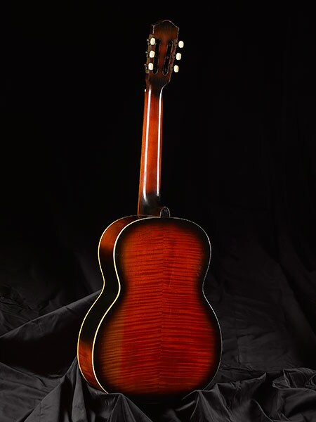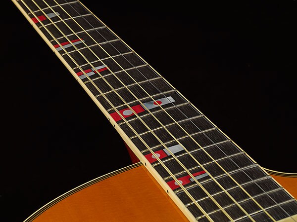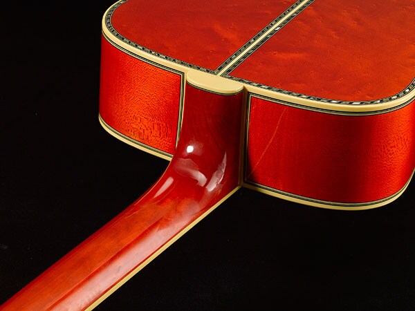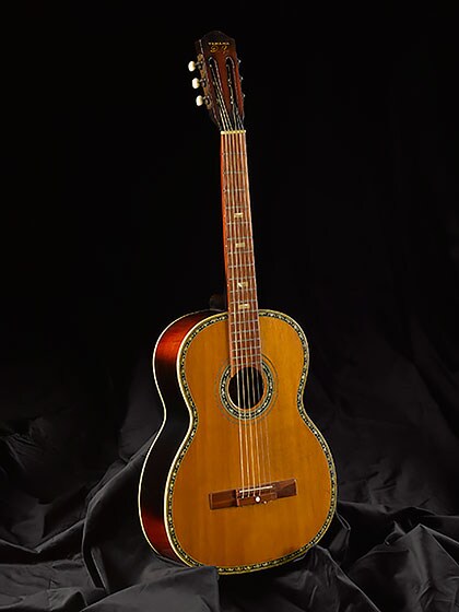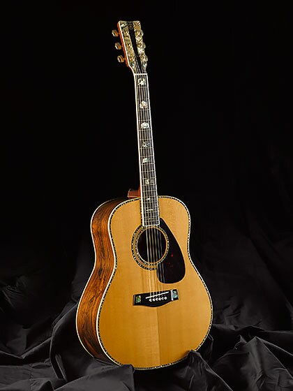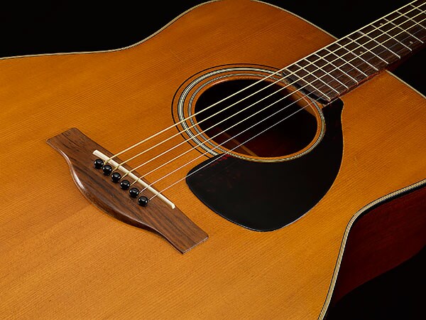 This was Yamaha's first acoustic guitar, manufactured after establishing a dedicated Guitar Division in 1966. Rather than copying overseas models, the development team used a proprietary design based on human engineering. Shown here is a model featuring the popular inner label that came to be known as the “red label.”
