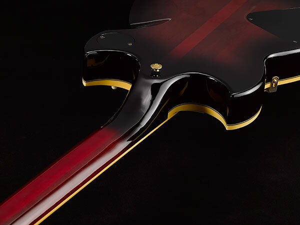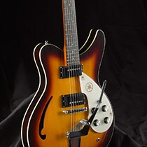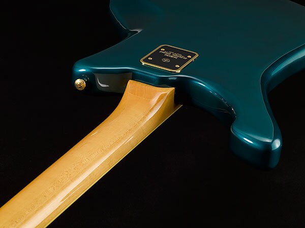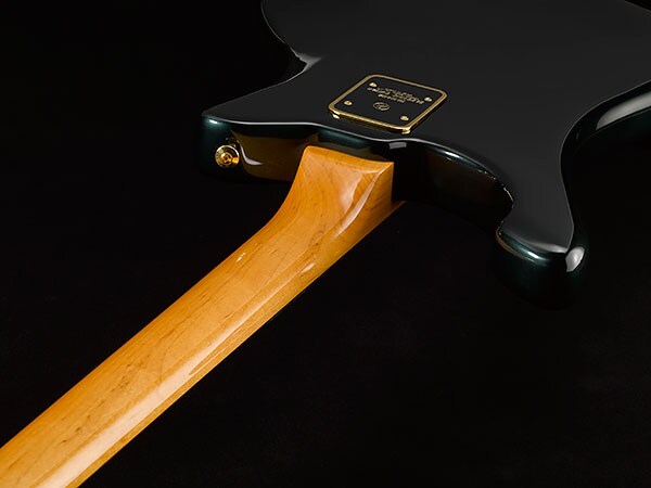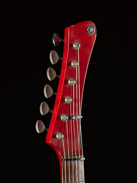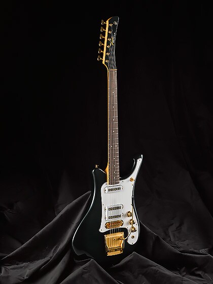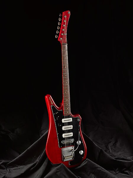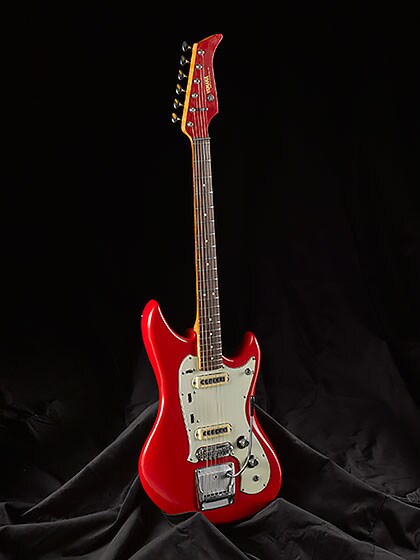 Our flagship model with a distinctive body that came on the market as electric guitars started to boom in popularity. Shown here is a 1995 remake of the 1965 prototype: the neck pickup is not slanted, the color is moss green (which never made it to market), and there is no fingerboard binding—all features that differ from the model launched in 1966.